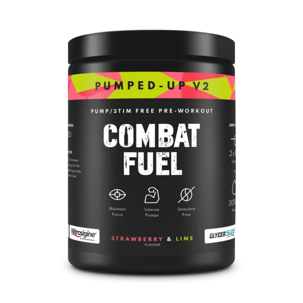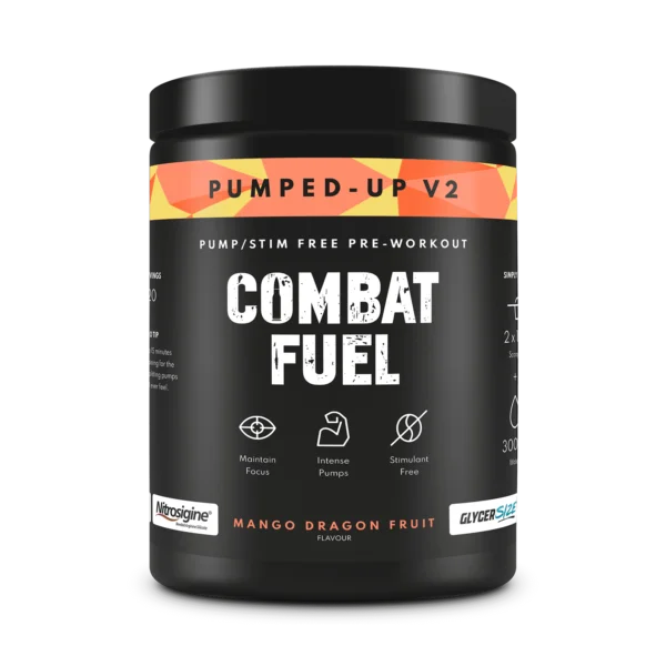 Pumped-Up pre-workout, 40 scoops delivering 20 servings per tub.